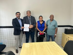 O advogado do SINFESP, Dr. Nestor Sá, acompanhado por dirigentes do sindicato e representantes da federação, esteve reunido com o Promotor de Justiça, Dr. Orlando, ocasião em que apresentou documentos e relatórios que fundamentam a denúncia protocolada.