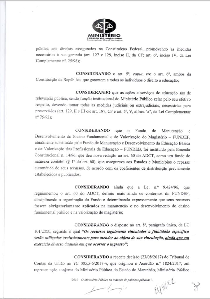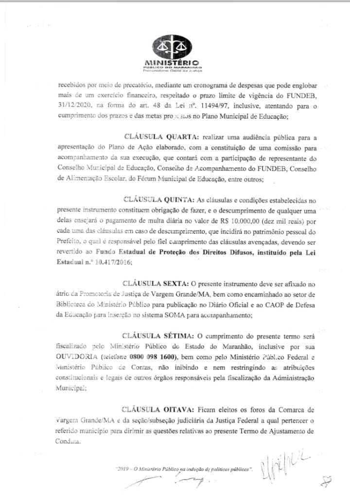Em 2019, foi firmado uma TAC entre o Ministério Público e o município, no qual este se comprometera em aplicar a totalidade dos recursos do antigo fundo, em ações de manutenção e desenvolvimento do ensino, sem reservar pelo menos 60% do montante aos professores (confira aqui).