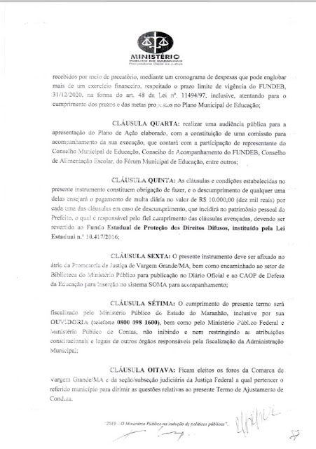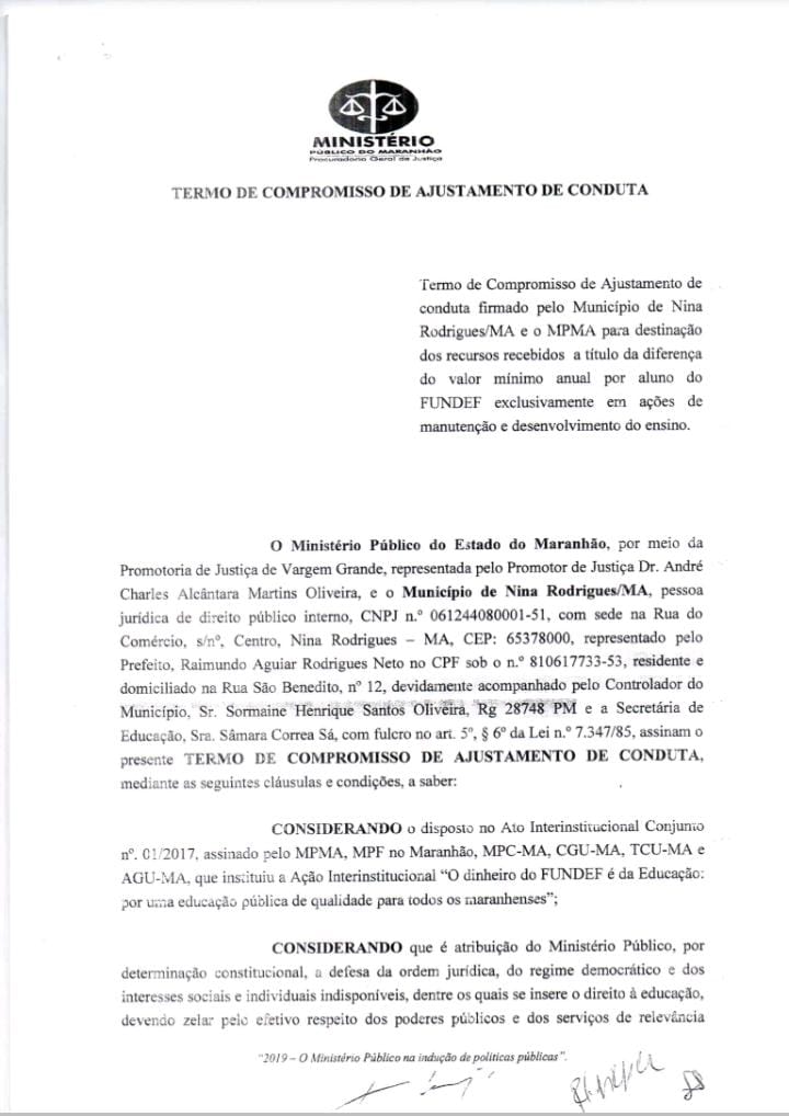 Veja abaixo documento da TAC firmada entre município e Ministério Público: